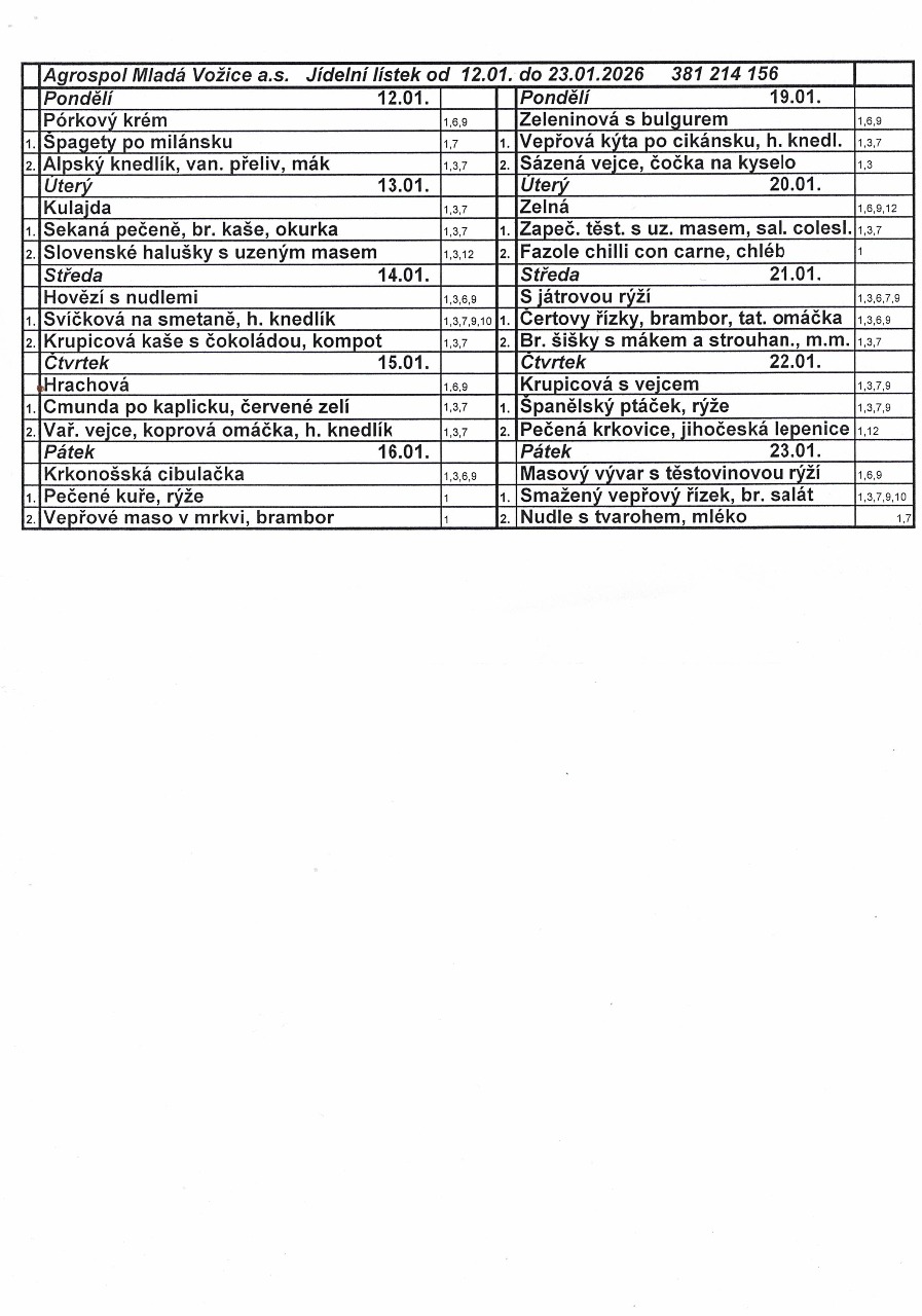 Jídelní lístek od 12.1. do 23.1.2026