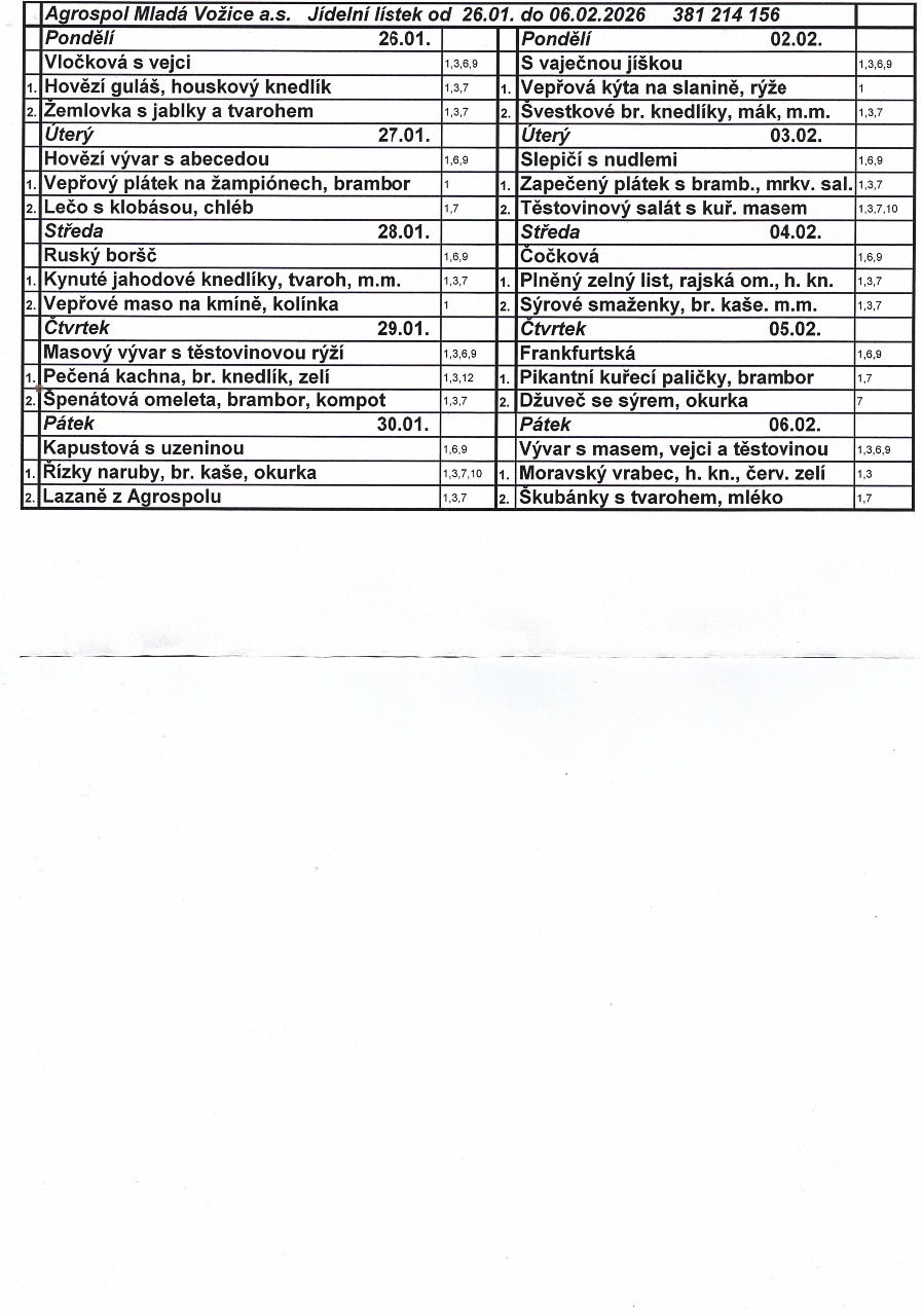 Jídelní lístek od 26.1. do 6.2.2026