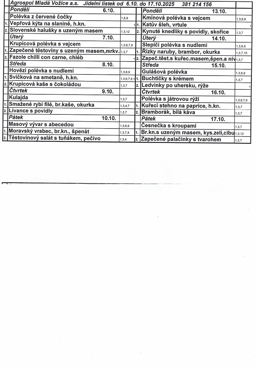 Jídelní lístek od 6.10. do 17.10.2025