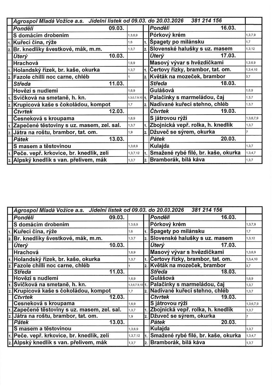 Jídelní lístek od 9.3. do 20.3.2026